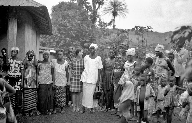 Early in our days in Kenema we were befriended by a woman who lived across from us - a woman who it later turned out was the head of the local (Kenema area) Bondo or secret women's society. Although I never really knew her exact age - in those days she was probably in her late 40's. Regal in her behavior and presence, Mama Hokey commanded respect due to her position in the women's society. She was the leader who led the training of young women to be wives and to be mothers. She was responsible for calling the Bondo Society into action. She was in charge of the Bondo spirits (or devils - the icons of the Mende Bondo Society. Tall and stately - she spoke with authority, and when she spoke others listened. She feared no one, but others showed her utmost respect. To some degree she kept her history to herself. I did learn that she had a son who went off in the early 1960's to study in the United Kingdom. I was never to meet him - and she talked of him rarely. Mama Hokey never talked to me about her husband. Whether he had died, or was living elsewhere was never clear. She had lived briefly in Freetown in the 1950's. Given that we lived so close it became easy to pay her a visit and to sit and make small talk on a regular basis. She learned of my interest in learning about Mende ways and this was perhaps the most influential aspect of why we got along. Proud of her heritage, and incredibly knowledgeable, she saw to it that when there were public Bondo displays and activities in the area then I would be notified. And during the so called Bondo season there was an abundance of Bondo activity all around us, and in nearby villages. In her modesty she never let on (at least to me) her leadership position - but from my observations it became obvious that she was in charge. Correctly so I was never made privy to the secret activity of the society - this would have been blasphemy. But I was invited to observe the public activity including the numerous times that new initiates came out of the bush to parade about, the numerous times when Bondo women might be out and about doing their activities, and of course, the numerous times when the actual devil would be out in our area - parading about. Local villages nearby us such as Tokpombu, Bitema, Gbenderoo, and Foindu (all in Nongowa Chiefdom)were, in addition to Kenema Town (our neighborhood there) were the places that most of the activity directed by Mama Hokey seemed to be located. I'd grab my cameras and put them in my red travel bag that I had acquired, and head out hoping to capture a few images. One camera (Pentax H1a) held black and white film, and the other (Nikon FTn) held either color slide film (usually Agfa)or color negative film. The Nikon had a built in light meter that was helpful. The Pentax required a hand held light meter.